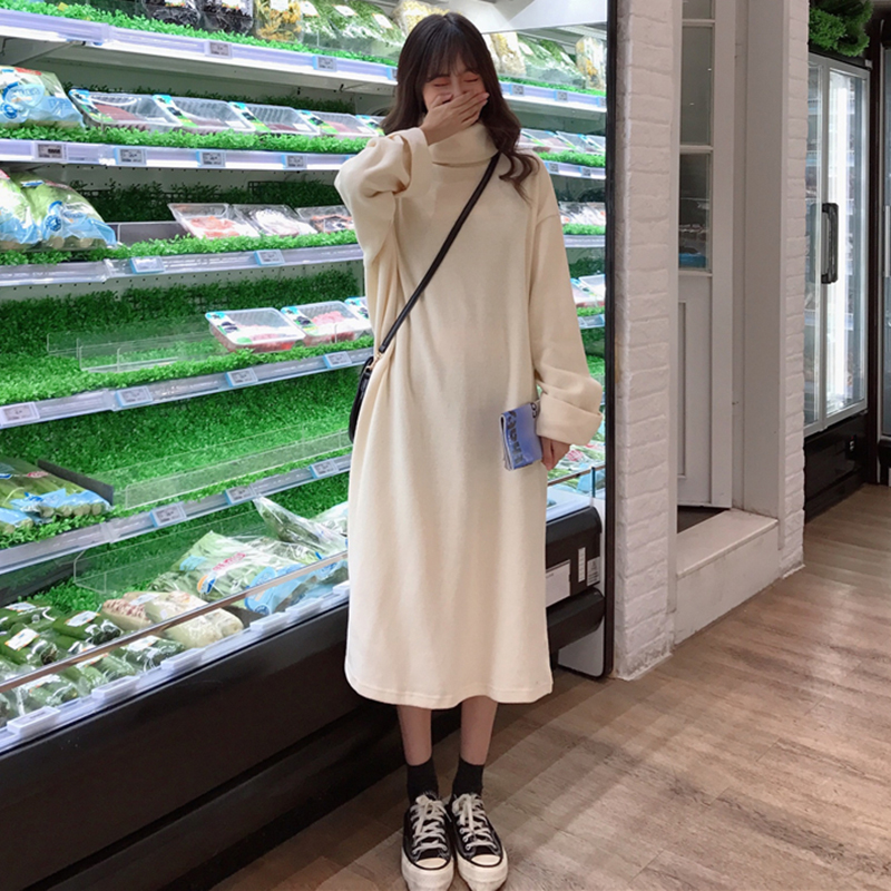 寬松高領學生黑色長袖連衣裙子女秋冬裝新款法式復古egg風衛衣裙