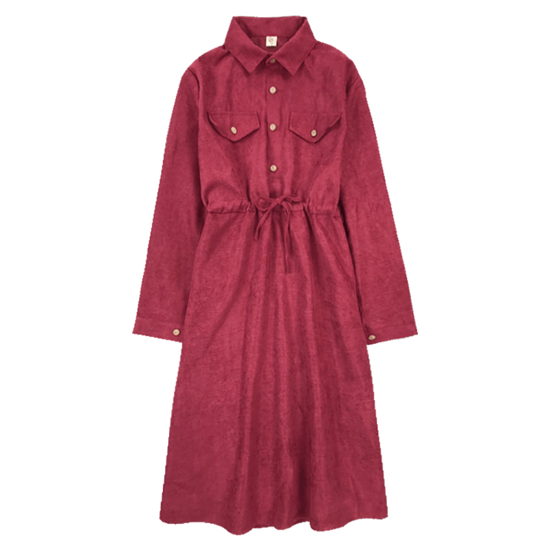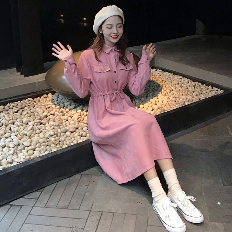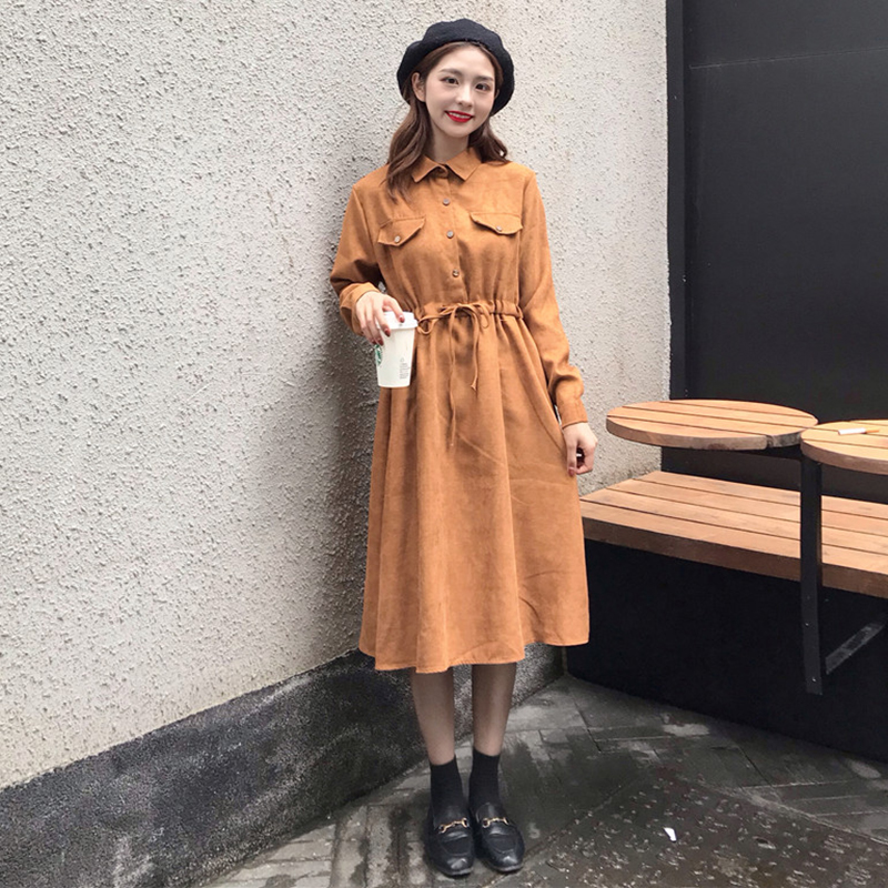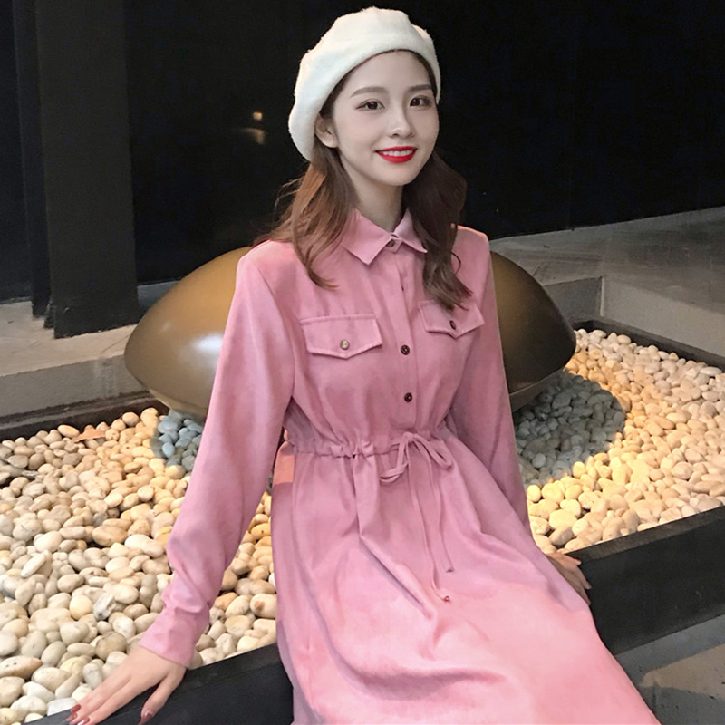 / chic中長款裙子女秋冬裝2018新款韓版氣質翻領收腰顯瘦A字連衣裙