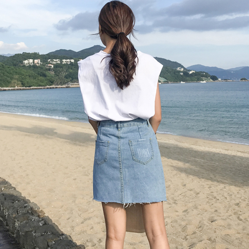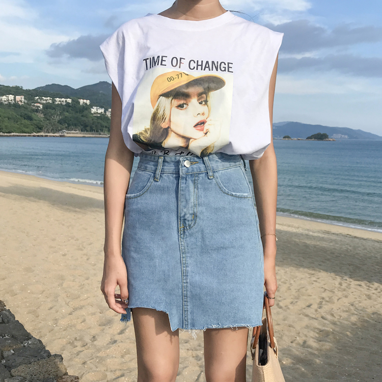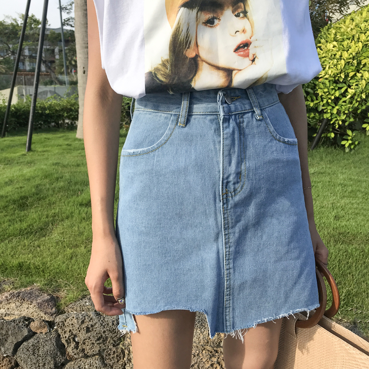 半身裙女夏新款韓版女裝高腰不規則牛仔裙學生a字裙顯瘦包臀短裙