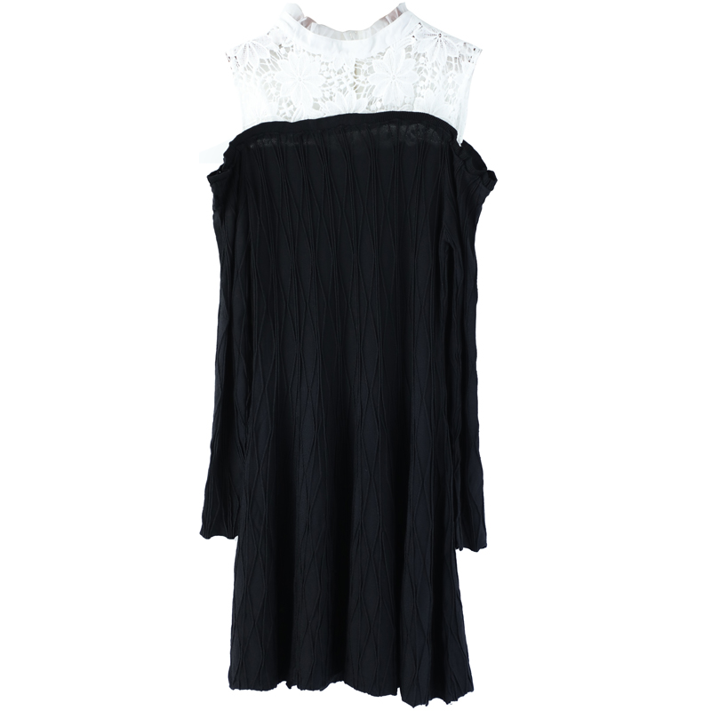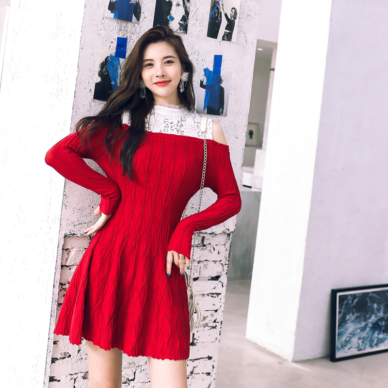 / 露肩針織連衣裙女秋2018新款韓版修身時尚中長款氣質長袖拼接裙子