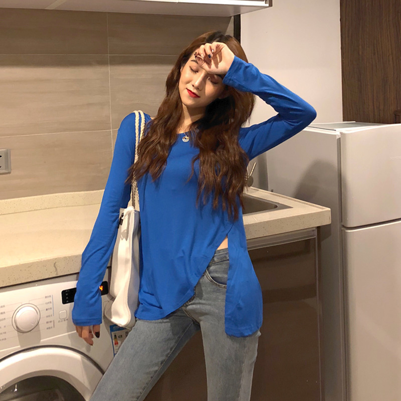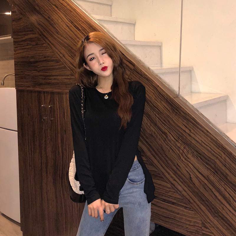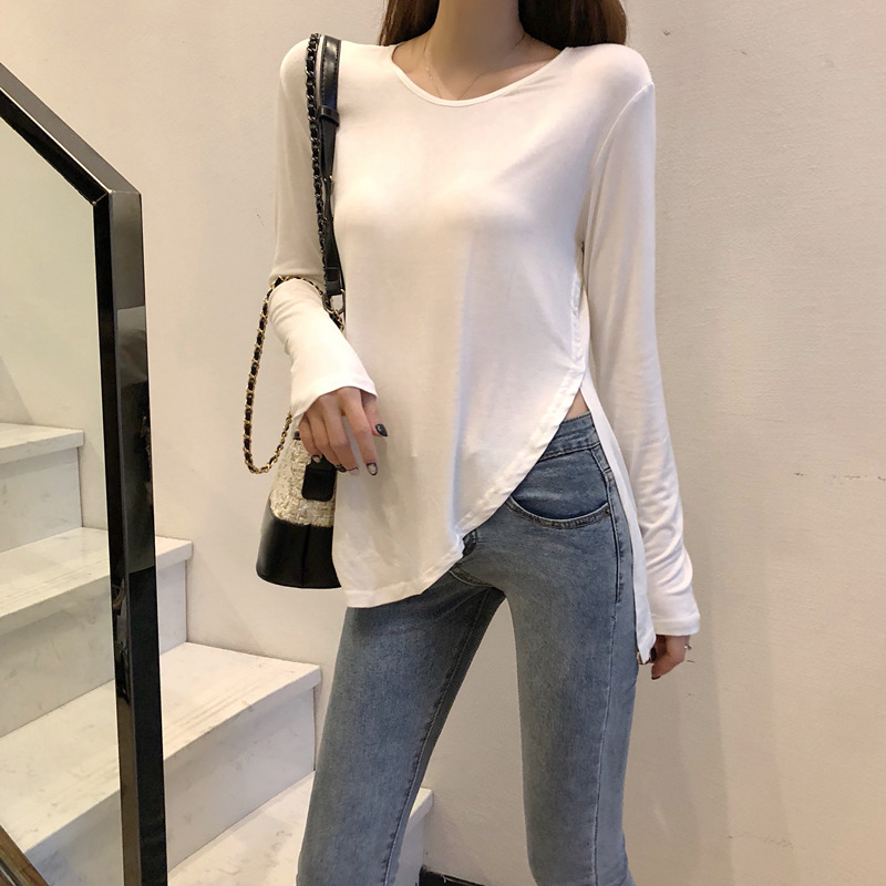 / chic早秋上衣女2018新款韓版時尚復古顯瘦百搭不規則開叉基礎T恤