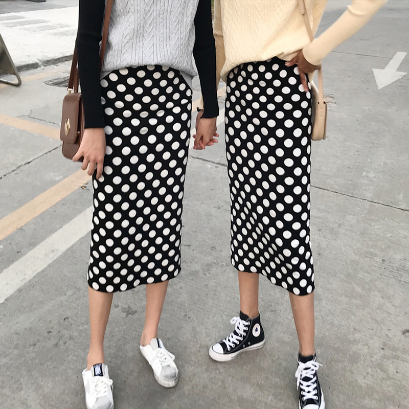 套裝女秋冬新款氣質高領打底衫寬松V領毛衣馬甲時尚波點針織長裙