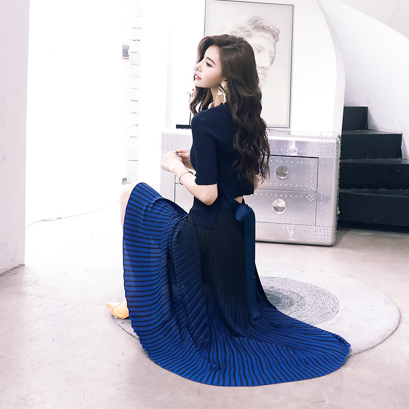 中長款針織衫上衣連衣裙2018秋季新款韓版時尚名媛氣質百褶半身裙