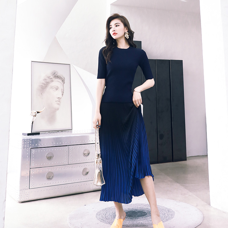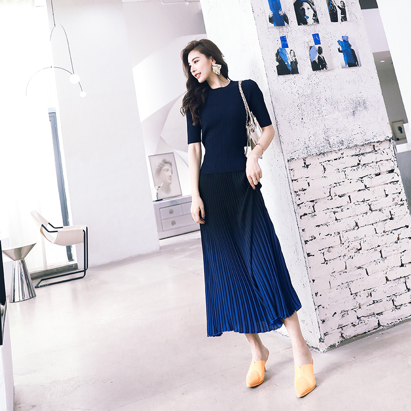 / 中長款針織衫上衣連衣裙2018秋季新款韓版時尚名媛氣質百褶半身裙