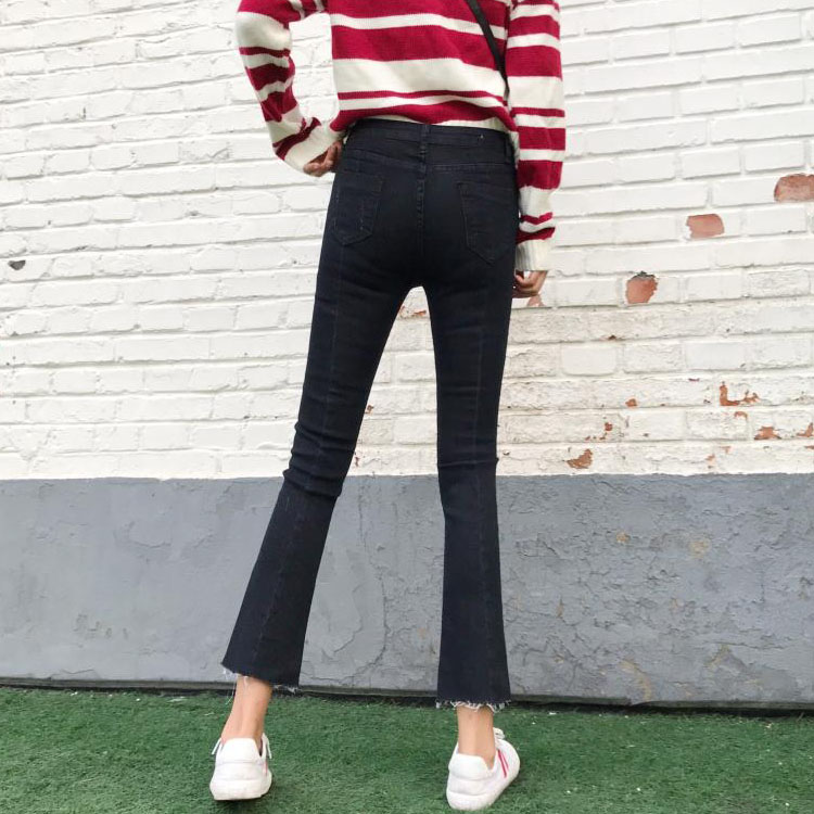 網紅同款牛仔褲女秋冬2018新款韓版顯瘦喇叭褲九分褲高腰黑色褲子