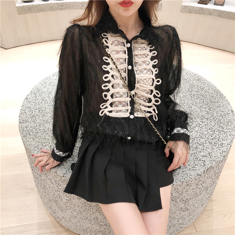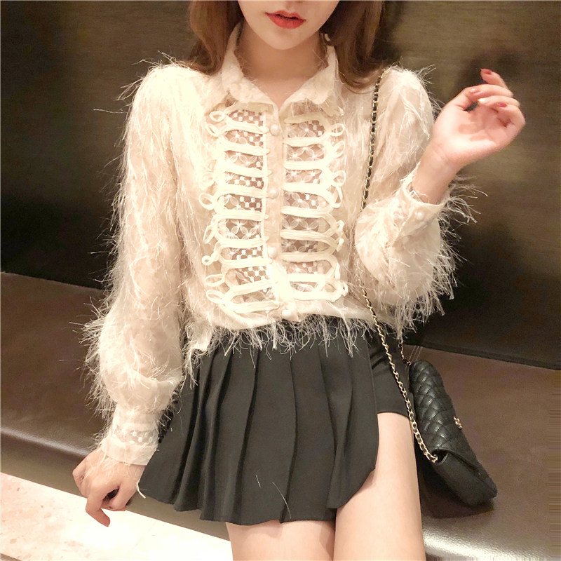 復古軟妹長袖襯衫女秋冬裝新款寬松中長款上衣小清新慵懶白色襯衣