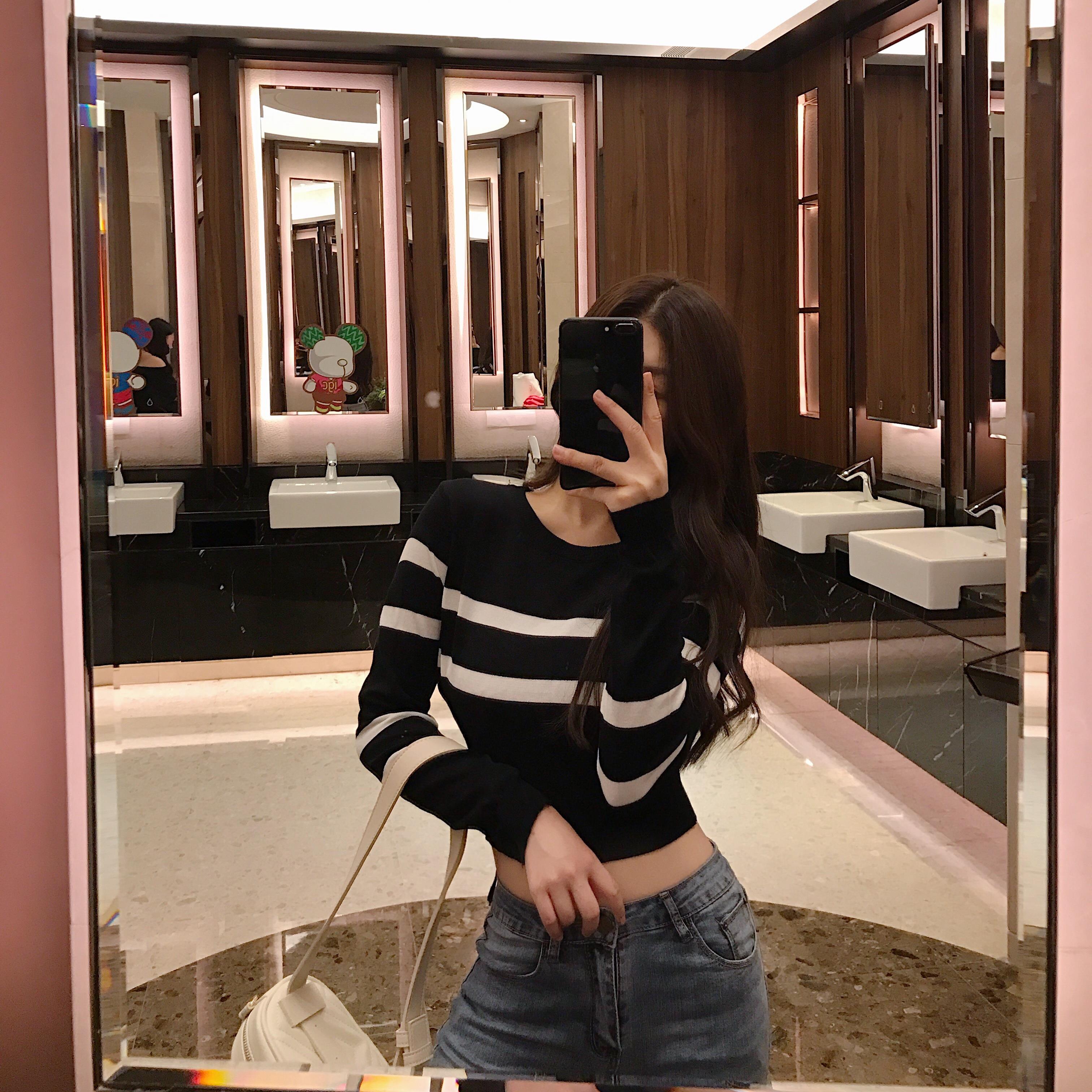 2018新款韓版上衣女chic百搭修身長袖秋季短款針織衫毛衣打底衫潮