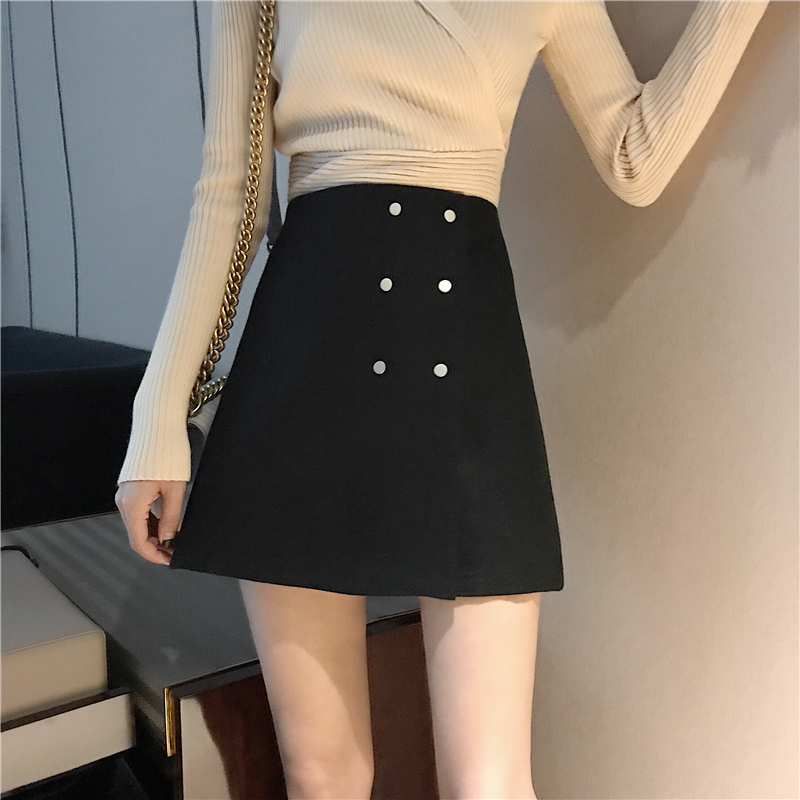/ 復古雙排扣高腰A字半身裙時尚套裝修身顯瘦翻領毛衣針織衫兩件套