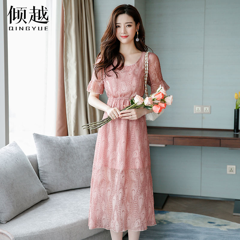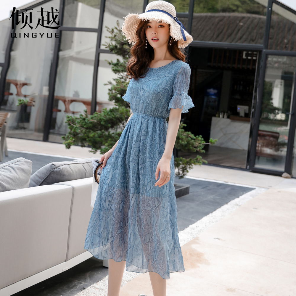 / 夏季短袖連衣裙女韓版修身顯瘦雪紡長裙甜美仙女裙度假裙2017新款