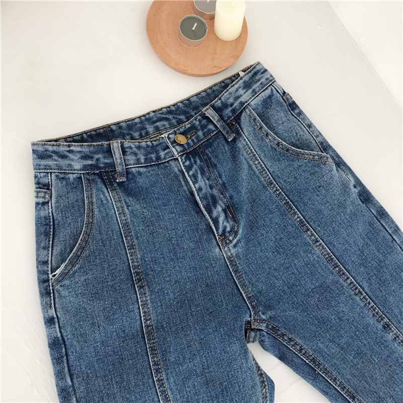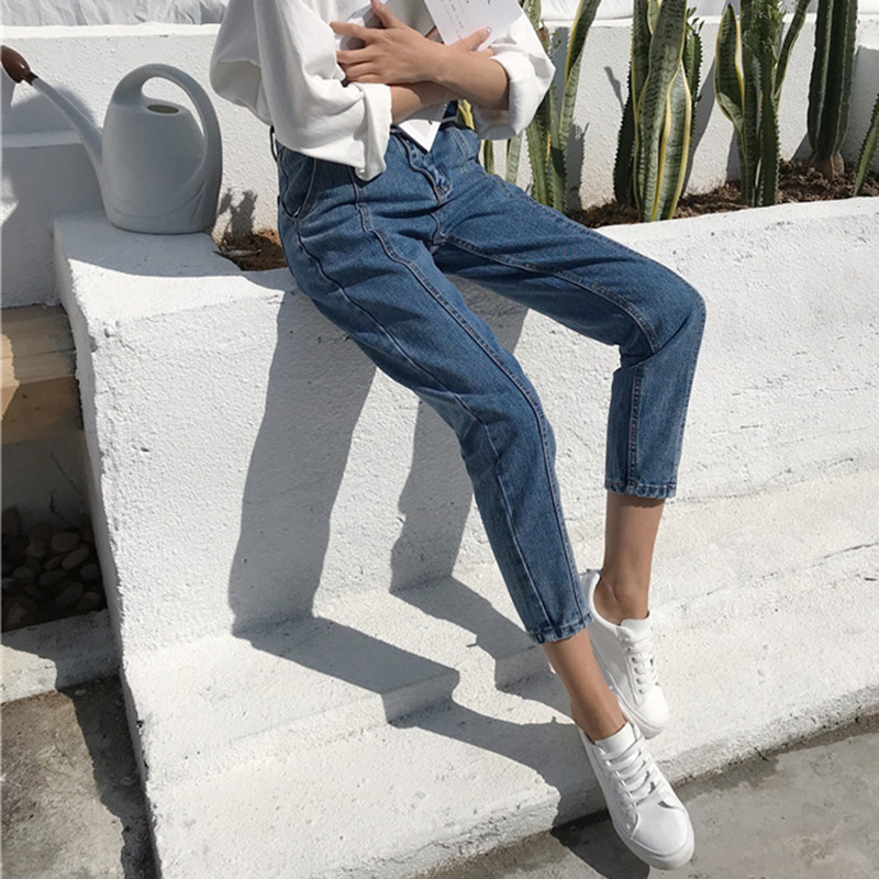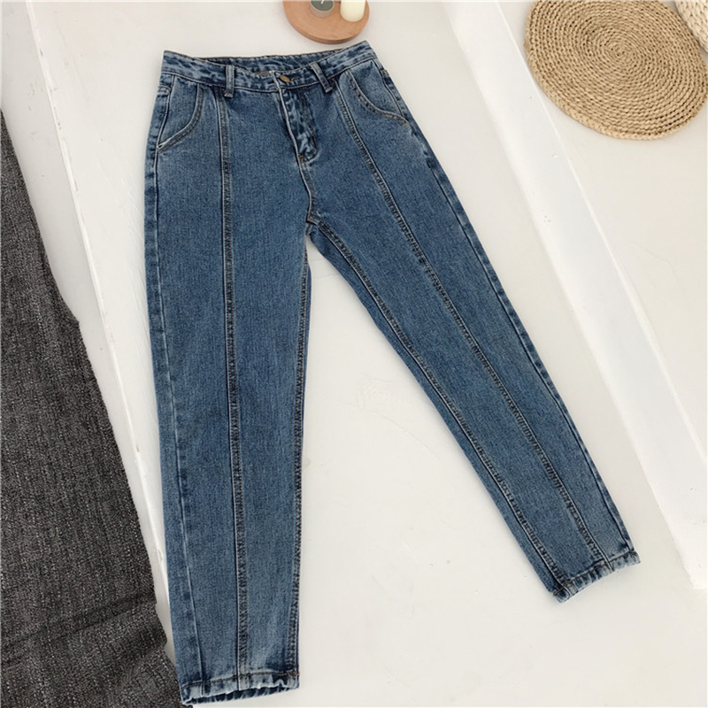 / 怪味少女褲秋冬裝2018新款高腰復古牛仔褲學生寬松顯瘦九分哈倫褲