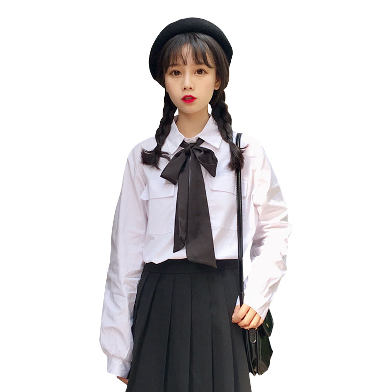 韓版時尚休閑套裝秋季女裝寬松領帶長袖襯衫+百褶裙褲短裙兩件套