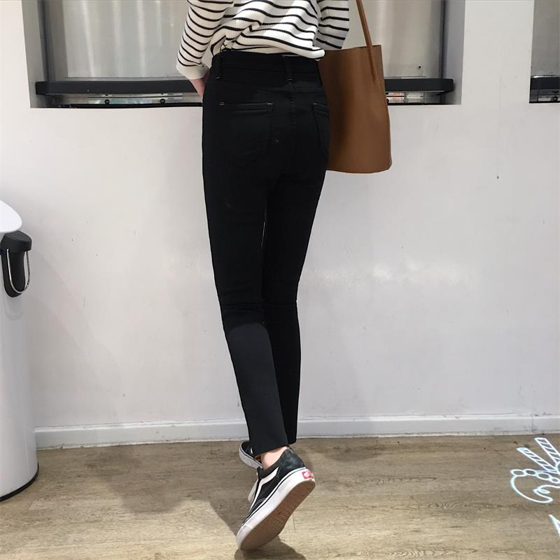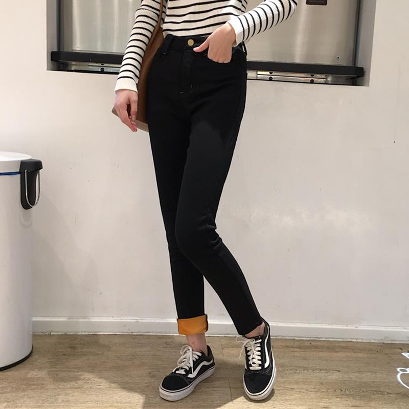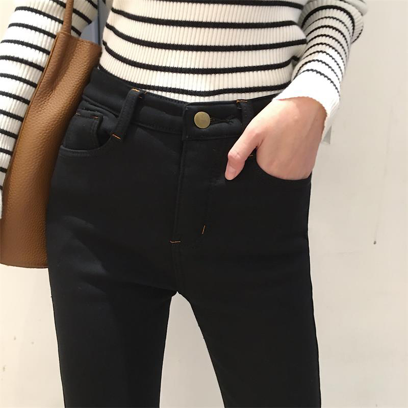 / 加絨彈力打底褲女秋冬裝2018新款韓版高腰修身小腳褲黑色顯瘦長褲