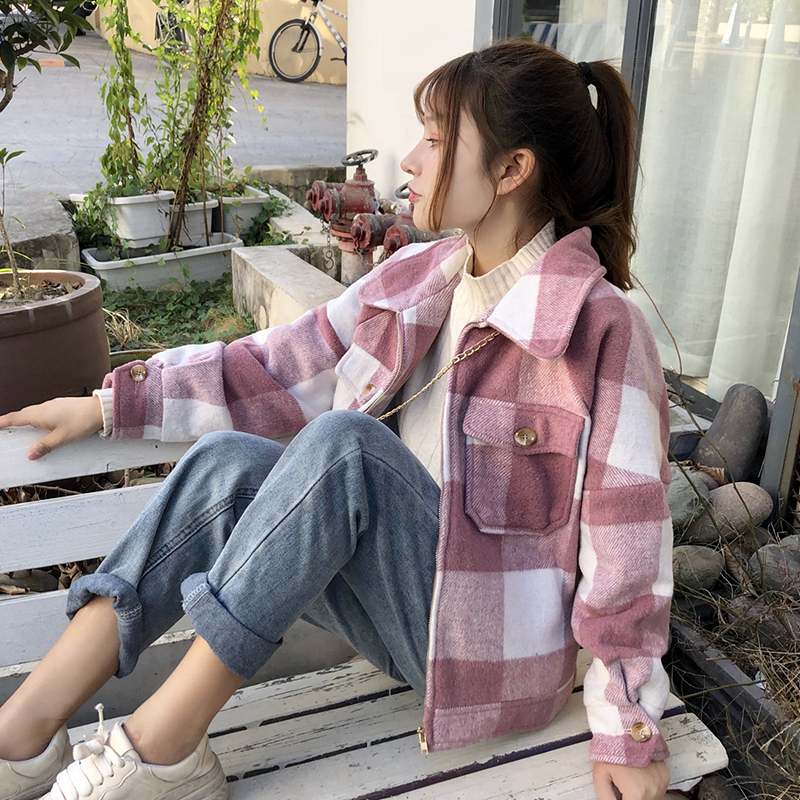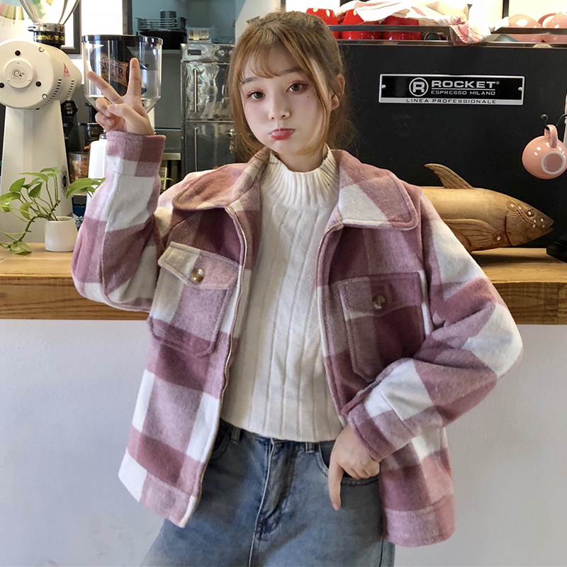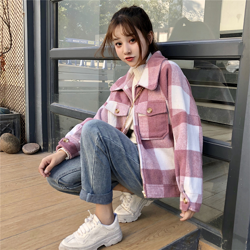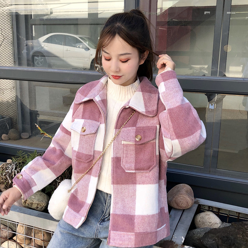/ 小個子格紋毛呢外套秋冬女裝2018新款韓版寬松翻領流行呢子大衣潮