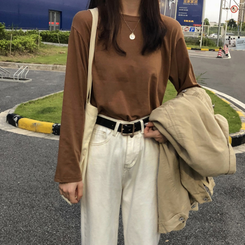 內搭打底衫秋裝女2018新款學生百搭長袖寬松顯瘦純色圓領T恤上衣