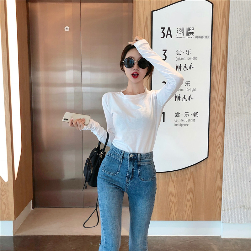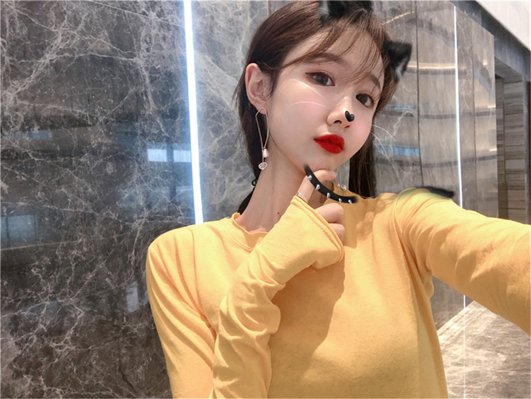 秋季2018新款韓版復古chic時尚T恤打底衫圓領學生百搭純色上衣女