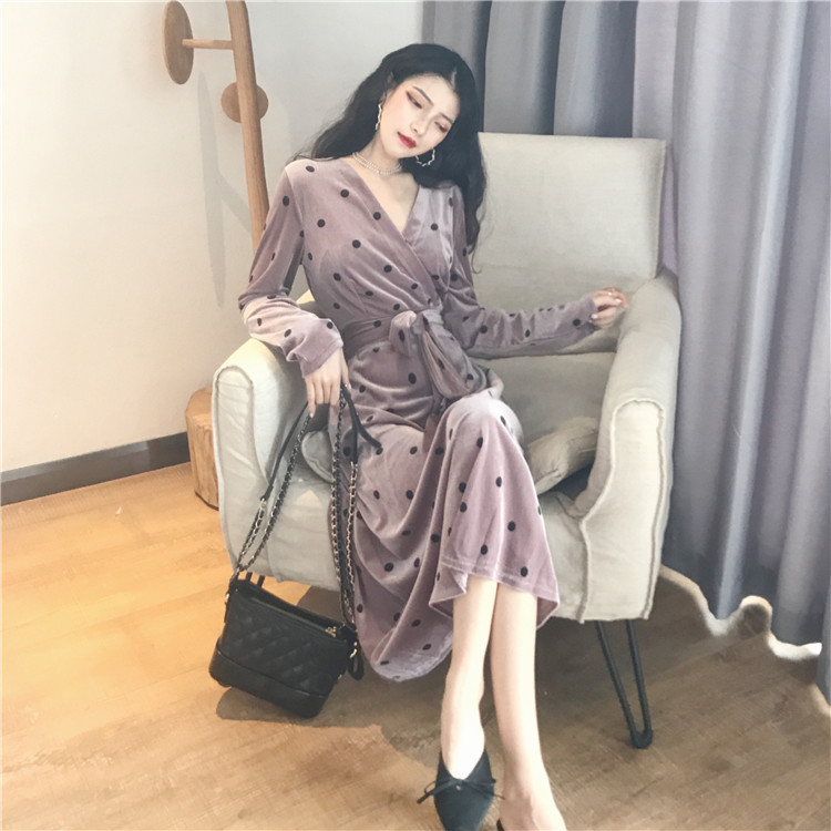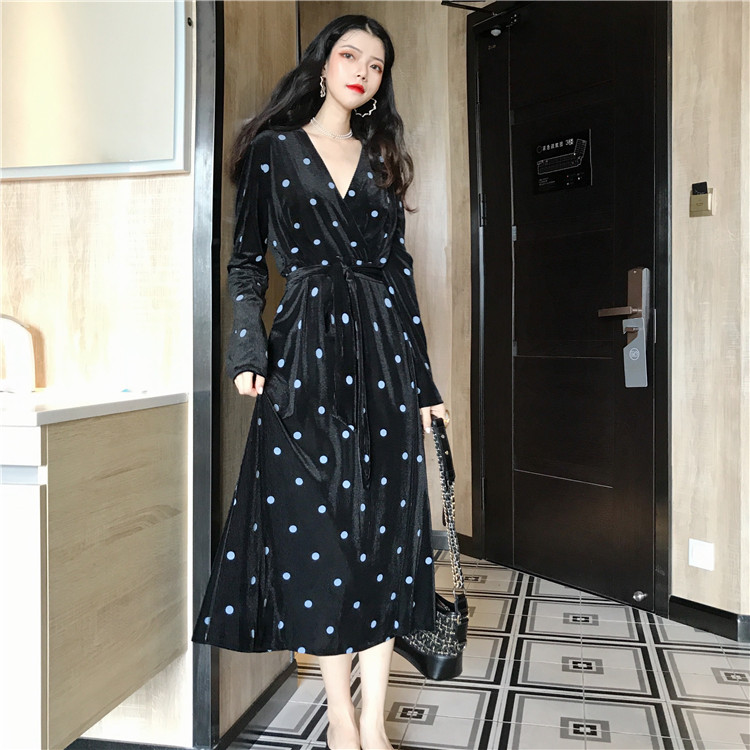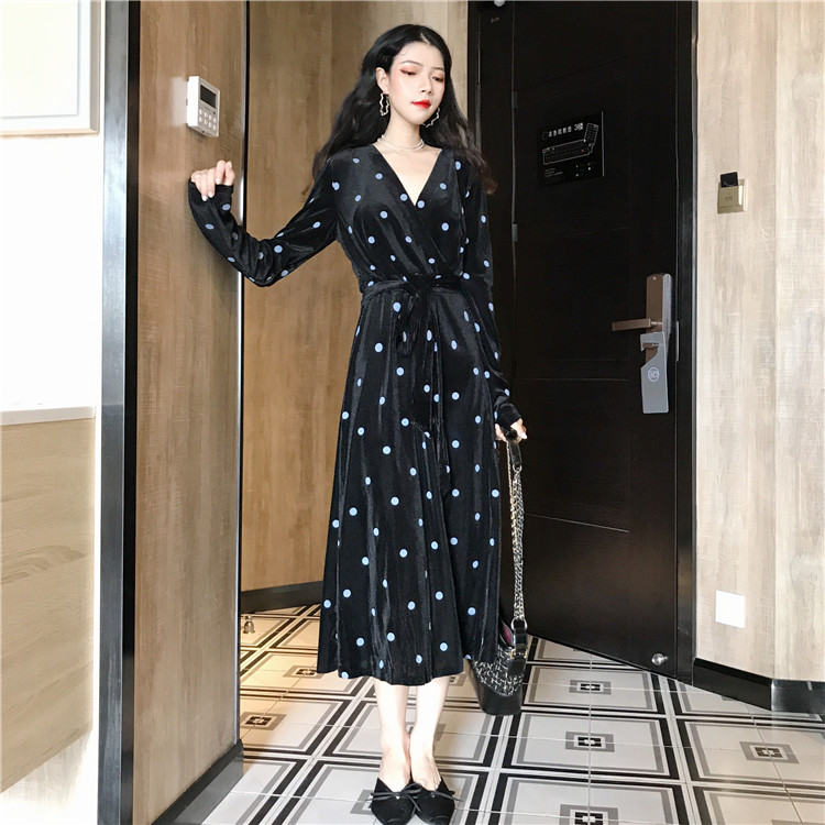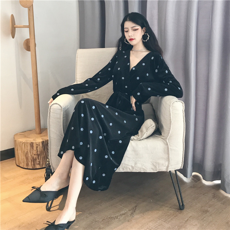 / 連衣裙秋裝2018新款名媛氣質V領修身顯瘦長款波點長袖高冷范女裝