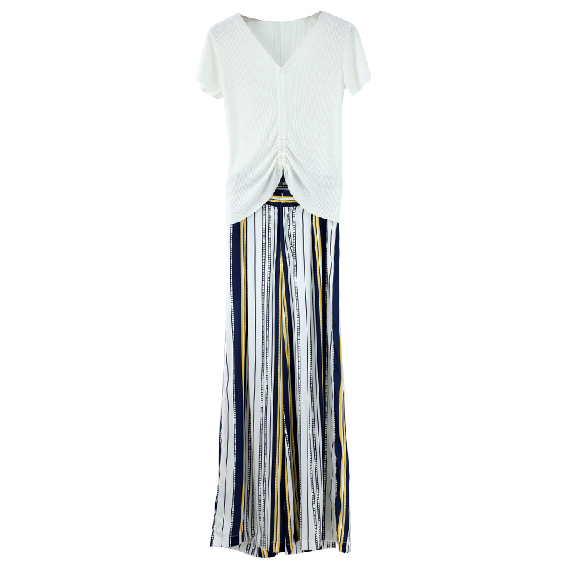 / S秀名媛氣質港味套裝2018夏季新款女裝個性上衣高腰闊腿褲兩件套