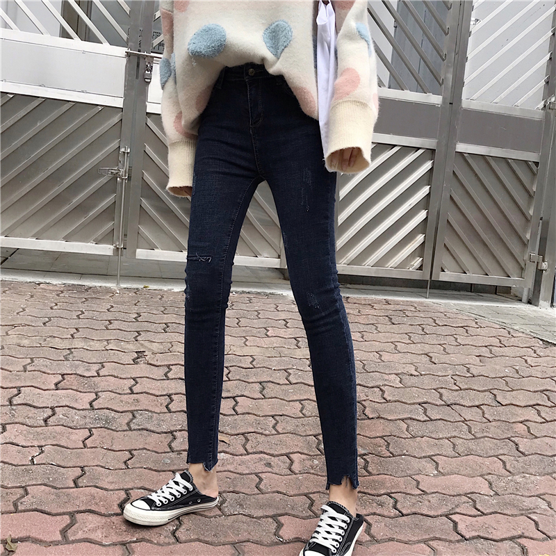 小腳褲秋冬裝2018新款韓版女裝高腰彈力鉛筆褲修身顯瘦牛仔長褲子