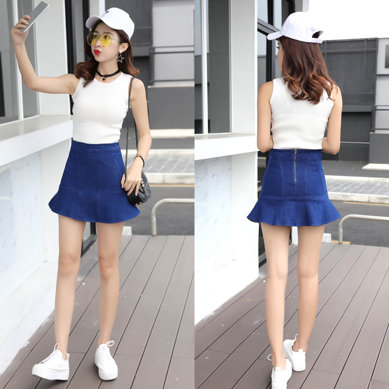 / 韓版高腰牛仔裙半身裙女荷葉邊A字包臀短裙魚尾裙褲裙包裙夏