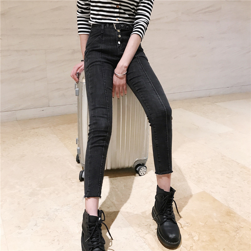 / 高腰顯瘦排扣牛仔褲時尚韓版秋裝女2018新款配腰帶鉛筆小腳九分褲