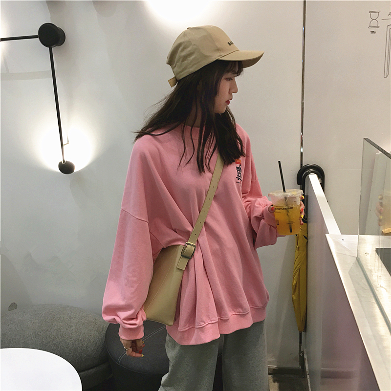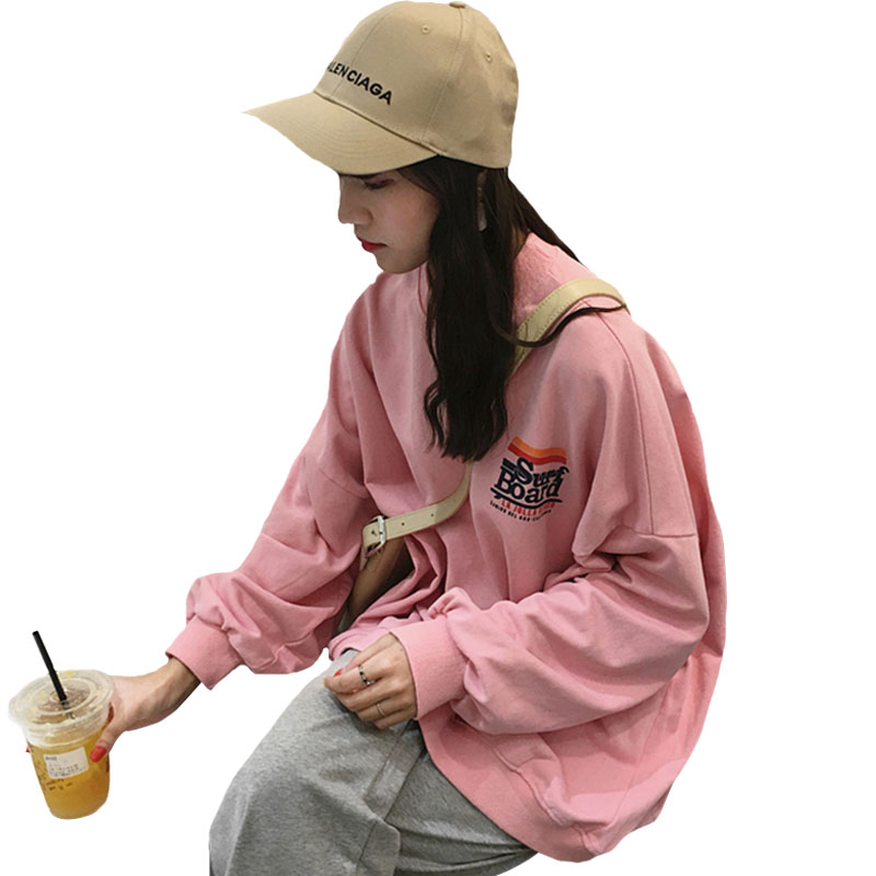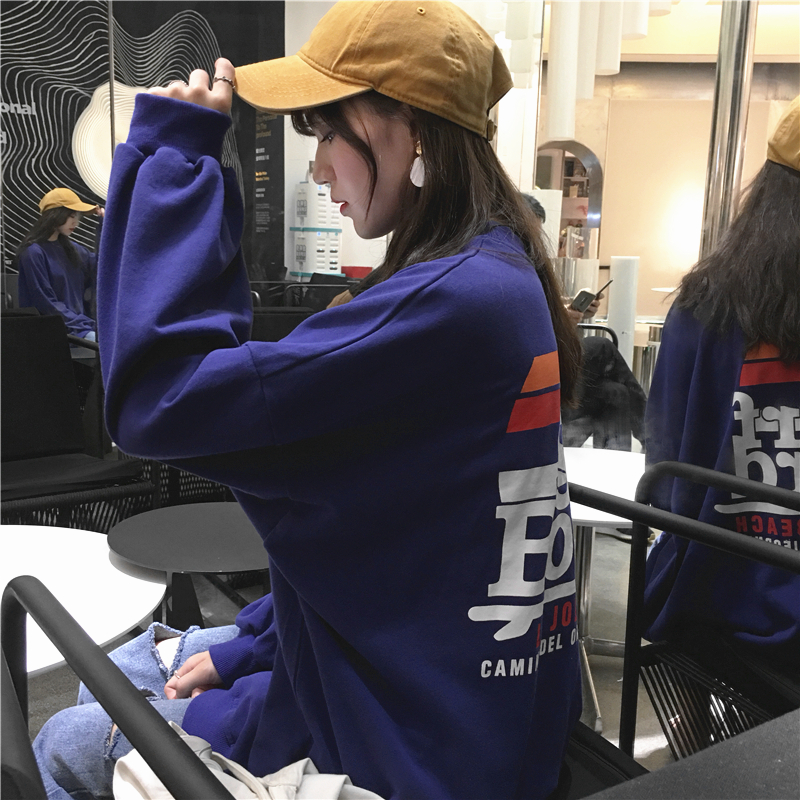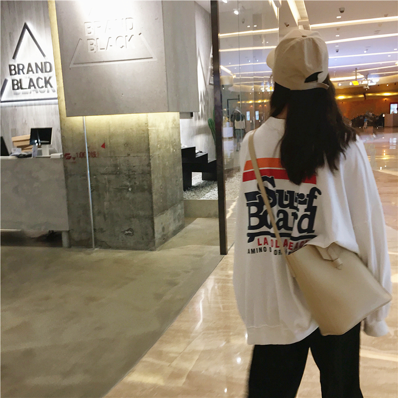 秋裝女裝韓版字母印花寬松慵懶風套頭衛衣中長款休閑長袖上衣外套