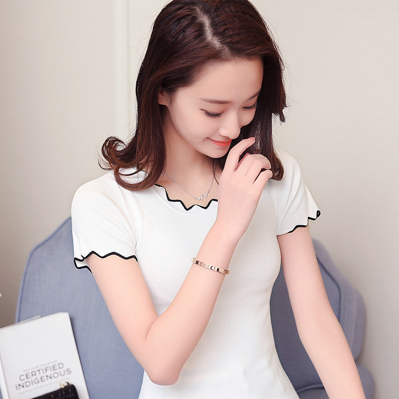 / 白色t恤女短袖韓版修身短款針織上衣女夏新款薄款百搭打底衫
