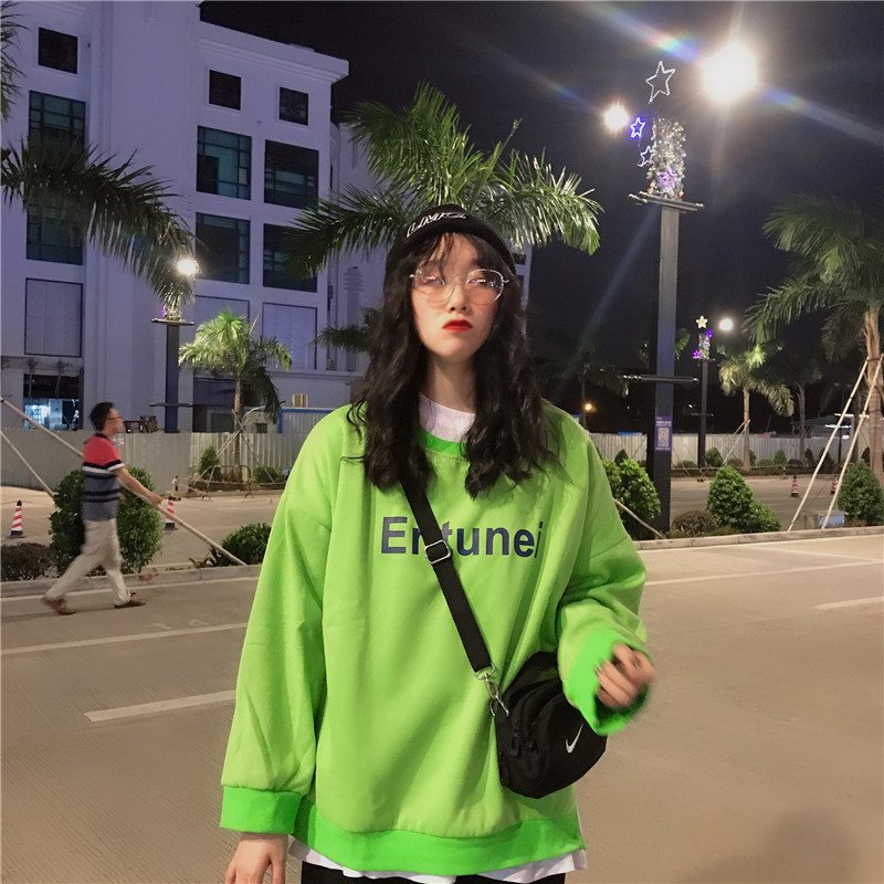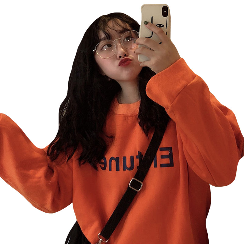 / 秋冬女裝韓版中長款原宿風字母寬松加絨加厚套頭超火衛衣上衣外套