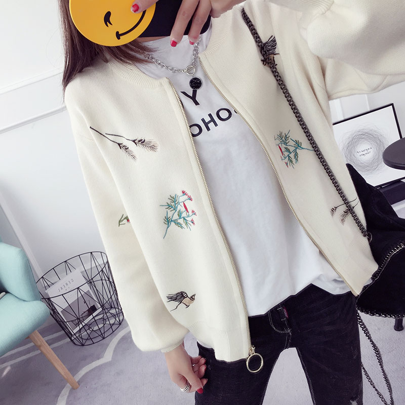 / 春季針織衫女開衫春裝短款寬松韓版學生刺繡毛衣外套燈籠袖上衣潮