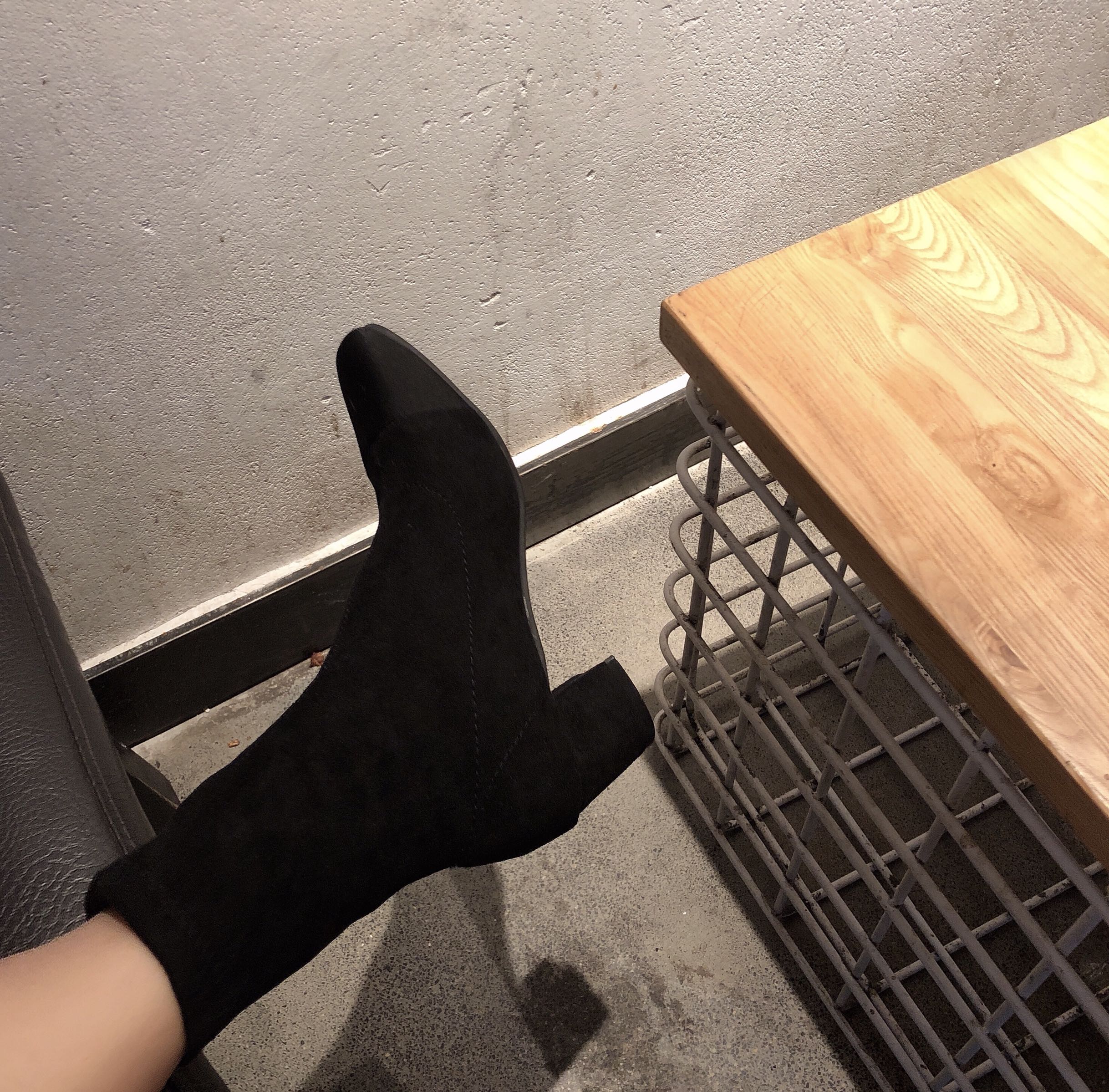 2018新款秋冬襪靴女瘦瘦靴彈力靴粗跟時尚氣質百搭純色中跟短靴潮