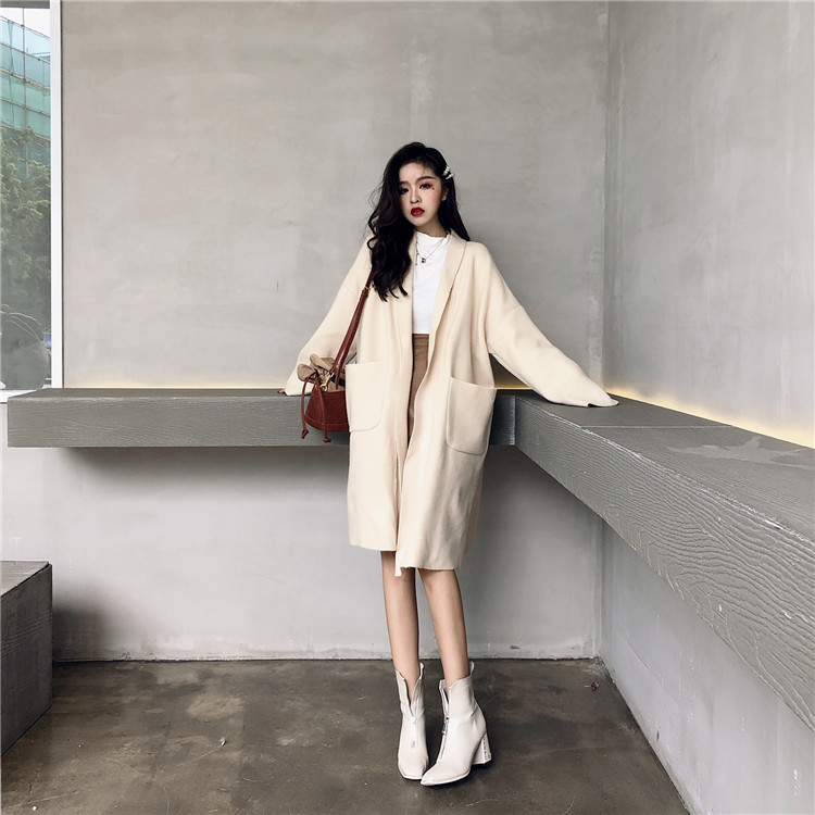 復古溫柔慵懶風隨意暖色系百搭寬松中長款毛呢外套女韓版呢子大衣