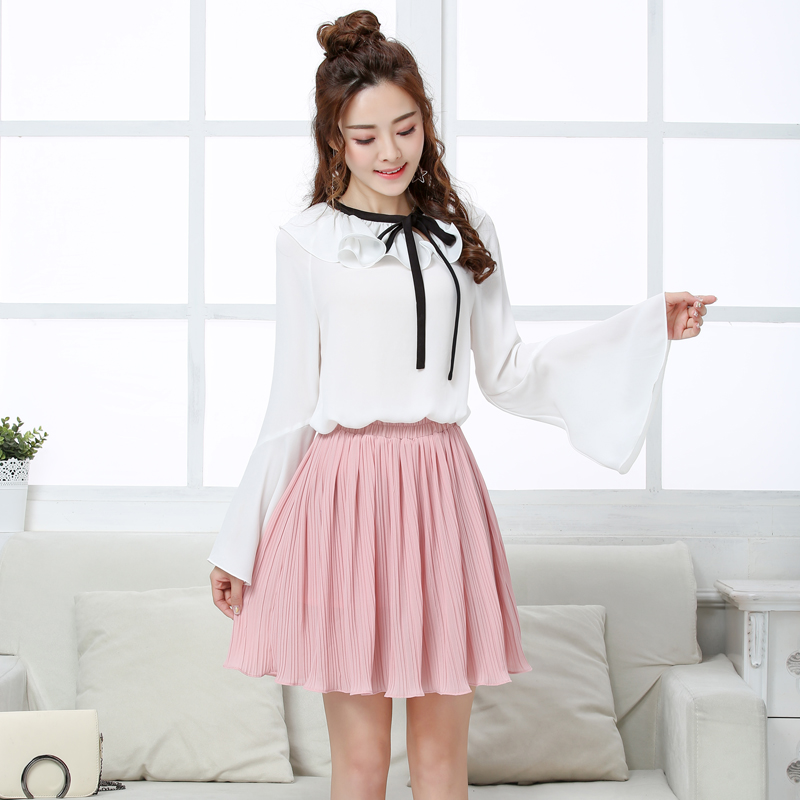 / 春夏季新款雪紡中長款百褶半身裙百搭a字韓版高腰百搭防走光褲裙