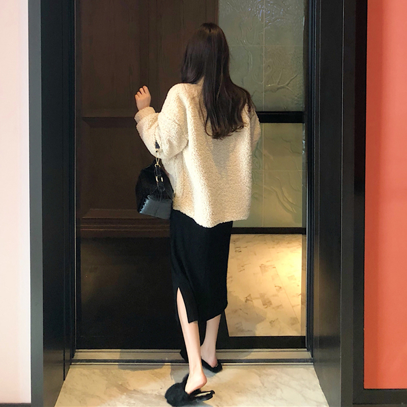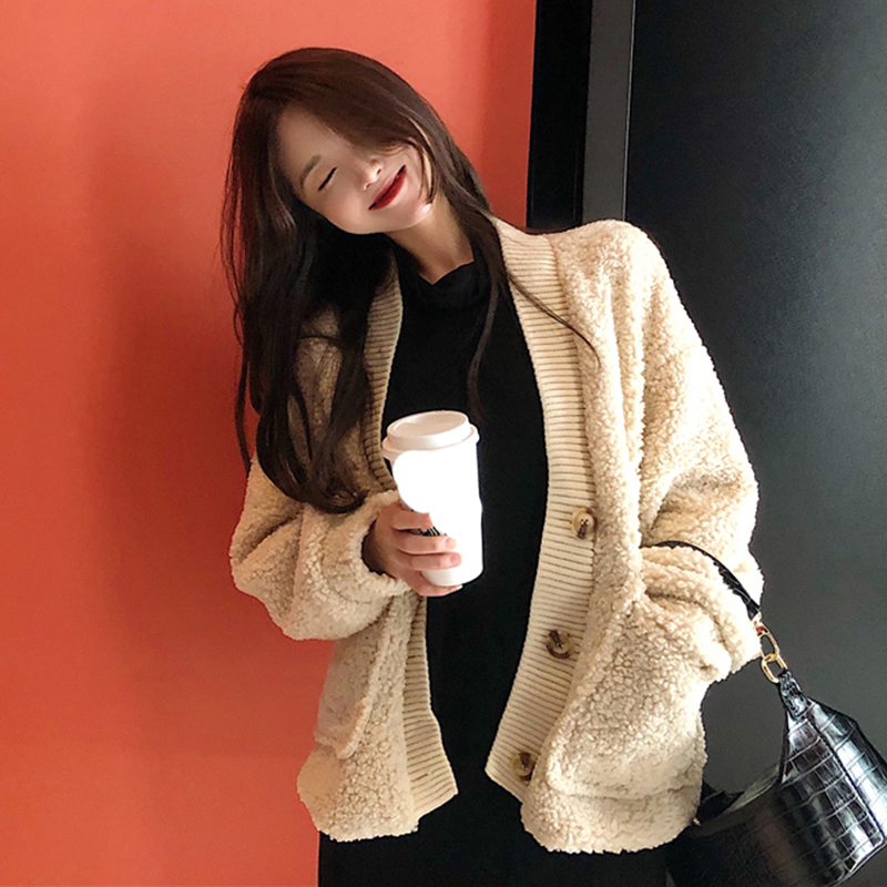 秋冬女裝2018新款韓版百搭羊羔毛開衫學院風寬松V領長袖上衣外套
