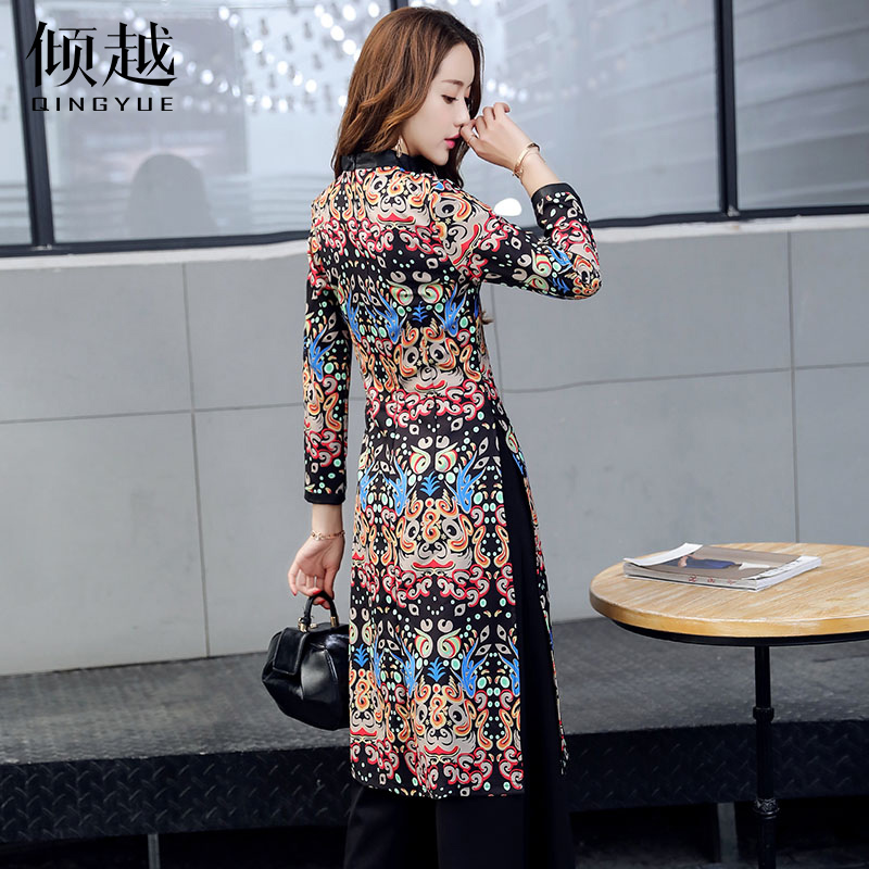 / 傾越2017春裝新款民族風女裝連衣裙中長裙套裝闊腿褲春秋長袖修身