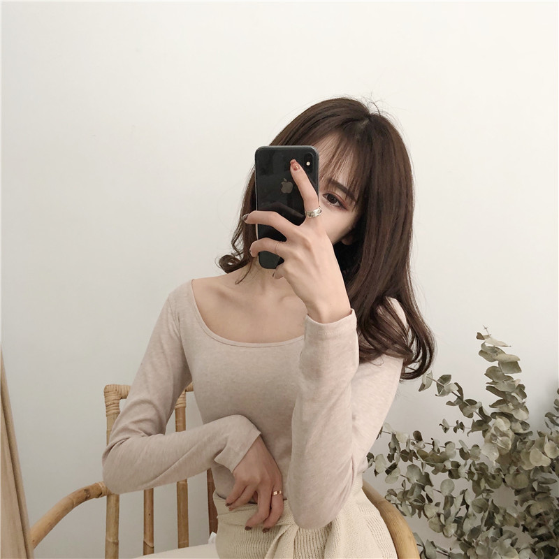 夏裝2018新款女chic氣質修身顯瘦性感T恤百搭緊身女純色長袖上衣
