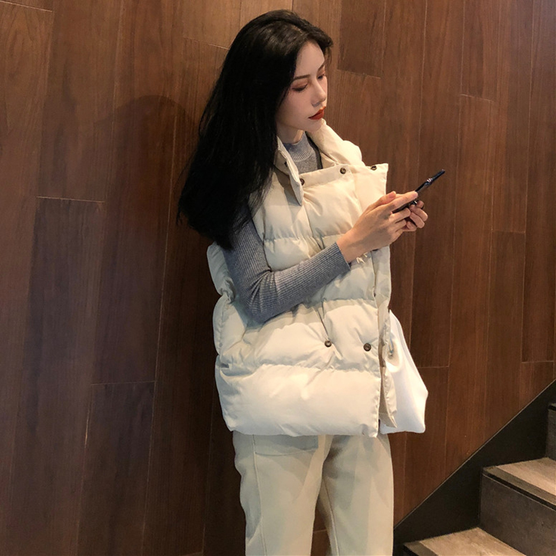 chic寬松顯瘦立領棉衣馬甲女秋冬裝2018新款韓版學生加厚坎肩外套