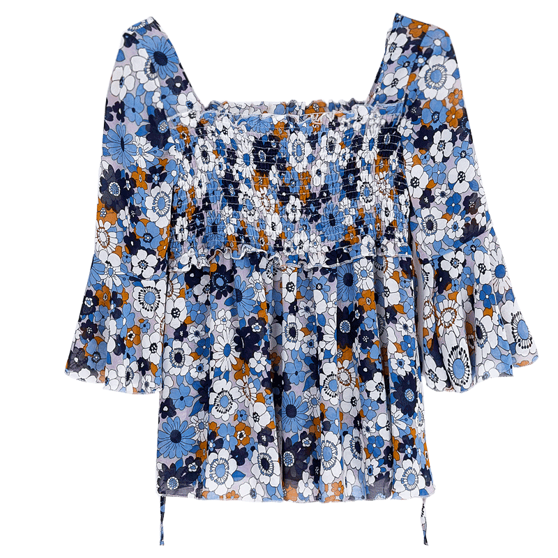 U領的領型,胸前做了松緊的設計