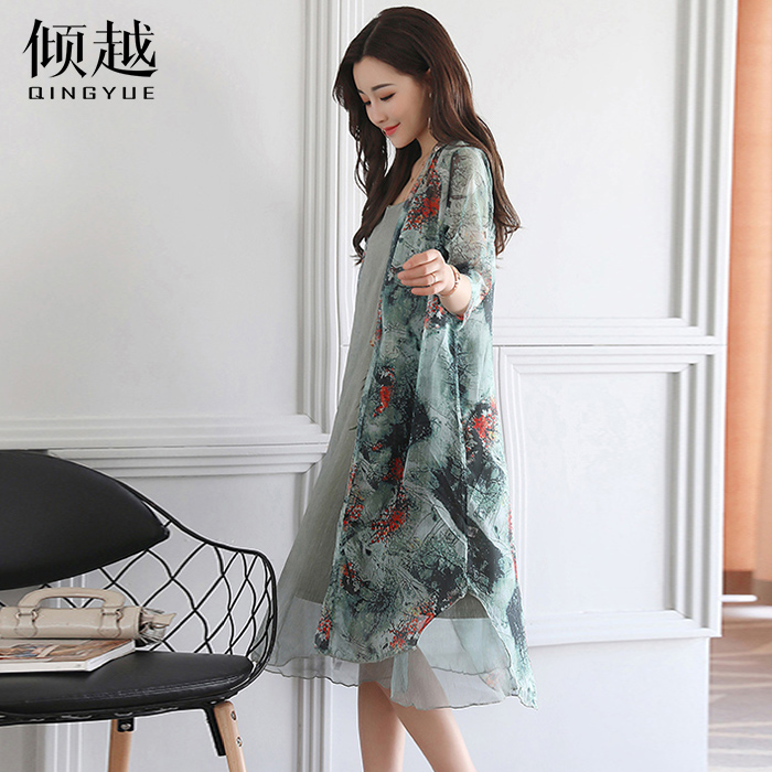 傾越時尚套裝女連衣裙中長款2017夏裝新款韓版顯瘦氣質兩件套裝潮