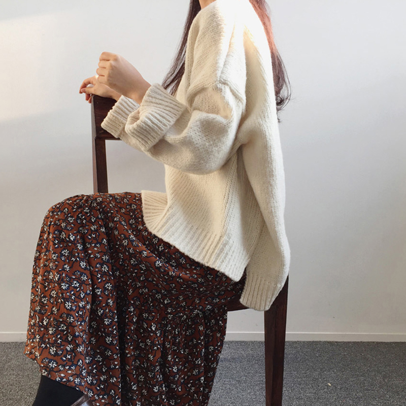 / 韓版2018秋冬季新款女裝寬松V領加厚外套慵懶風休閑開叉套頭毛衣