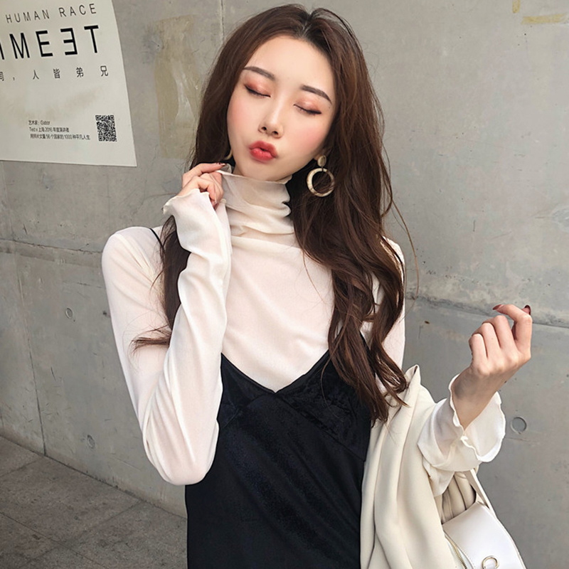 / 學生高領修身顯瘦打底上衣女秋冬裝新款時尚氣質T恤黑色長袖體恤