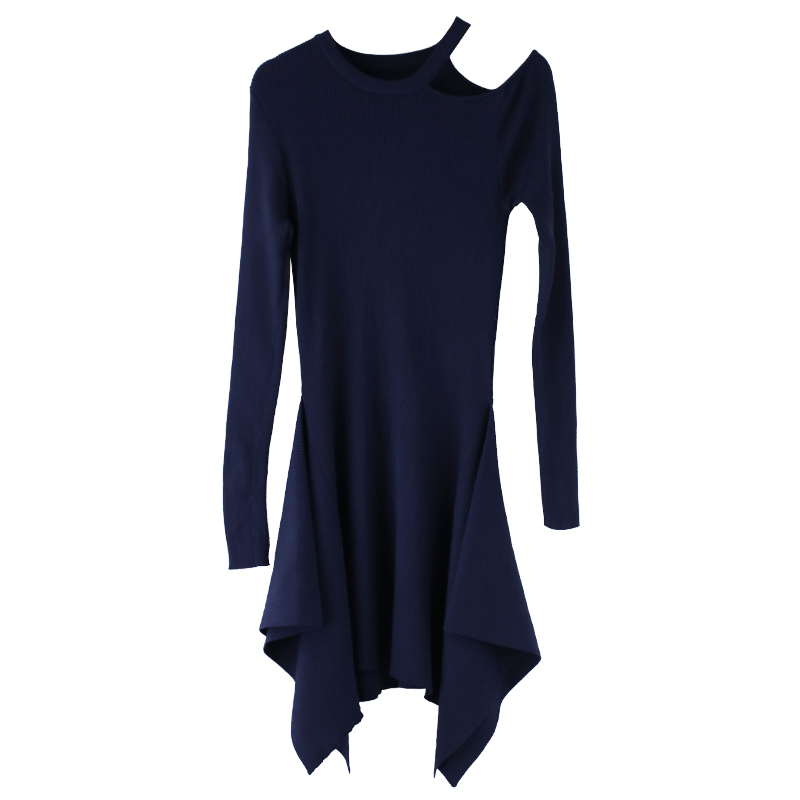 名媛氣質針織毛衣連衣裙女2018秋季新款中長款露肩長袖不規則裙子