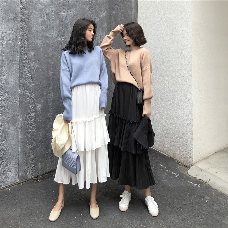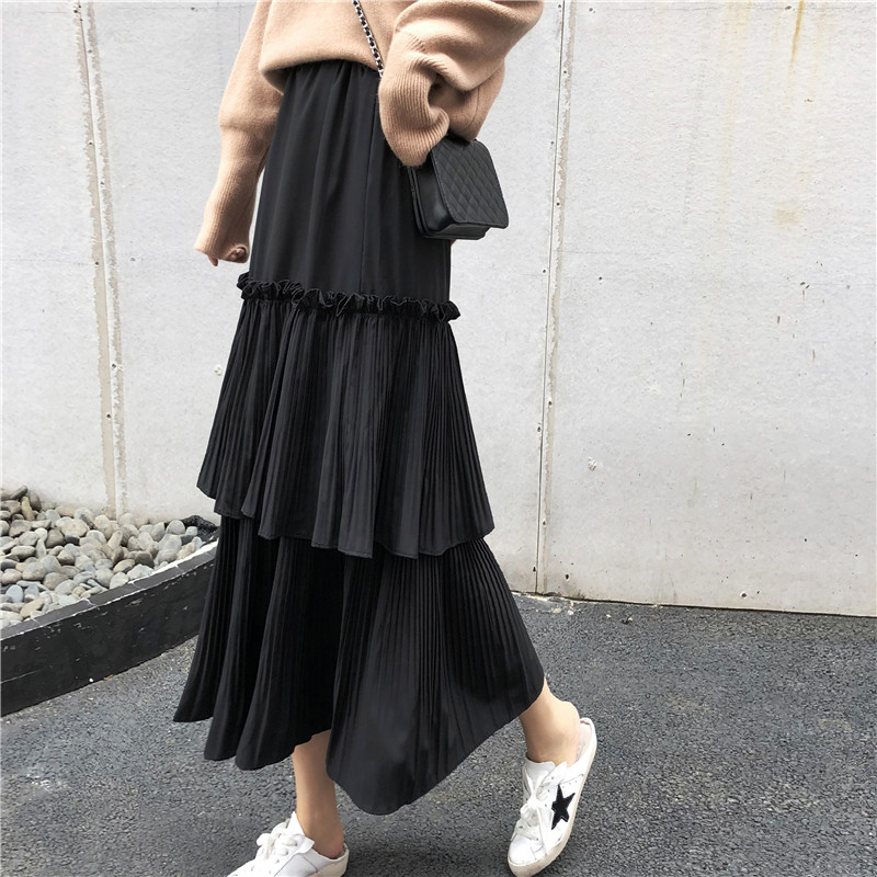 / 韓版秋裝女2018新款松緊高腰修身荷葉邊蛋糕半身裙百搭中長款女裙