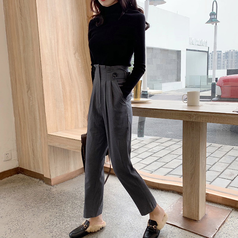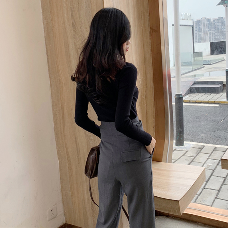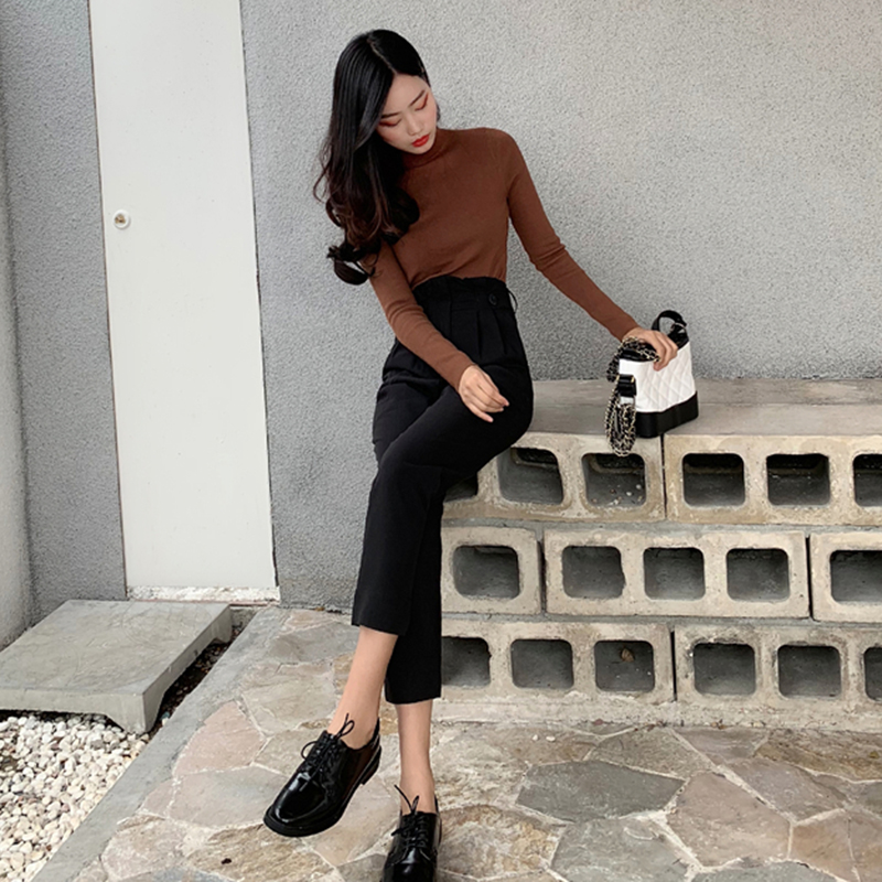 / 套裝女秋冬2018新款修身黑色針織打底上衣休閑西裝褲直筒九分褲子