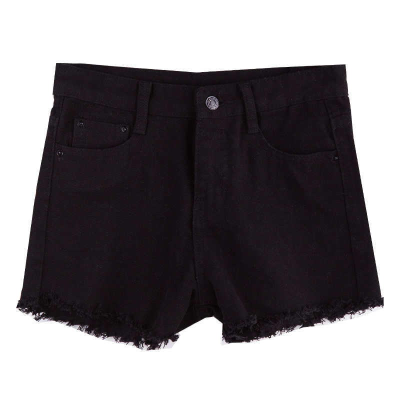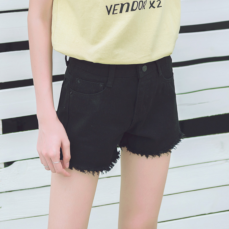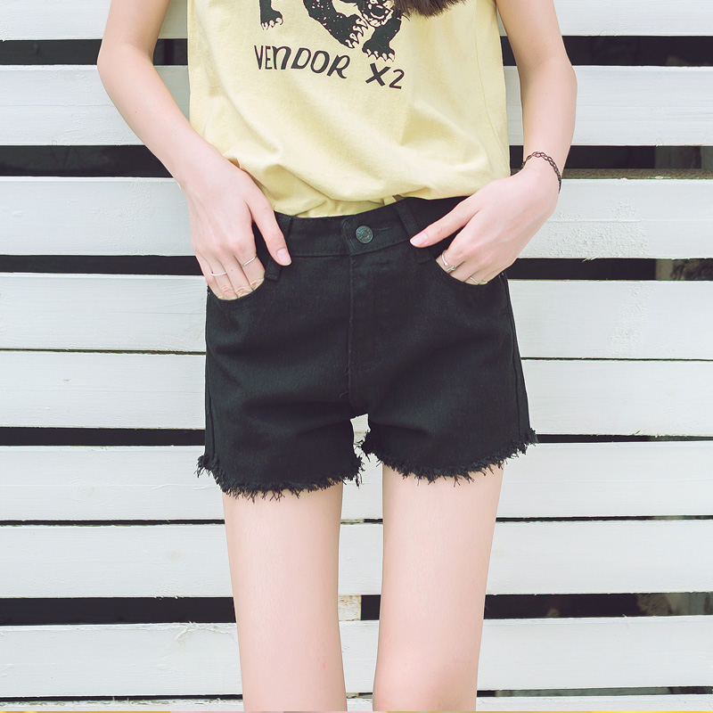 / 夏季韓版女裝純色流蘇毛邊牛仔短褲學生百搭修身顯瘦直筒褲