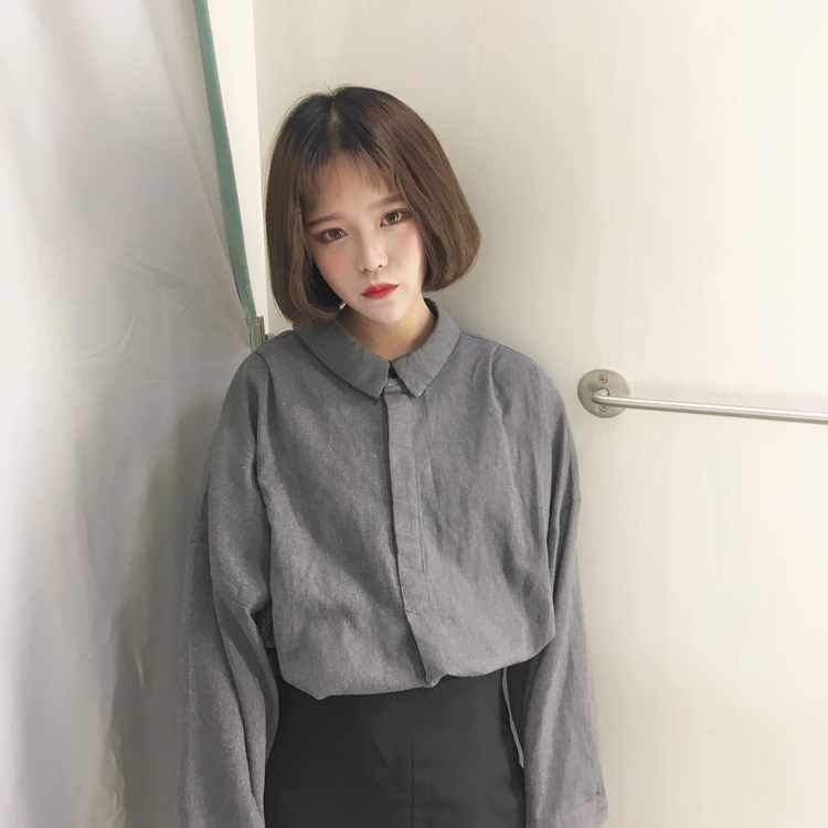 / 秋季女裝韓版chic復古港味簡約寬松系帶襯衫學生長袖休閑襯衣上衣