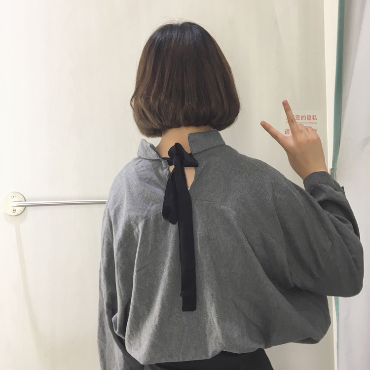 秋季女裝韓版chic復古港味簡約寬松系帶襯衫學生長袖休閑襯衣上衣