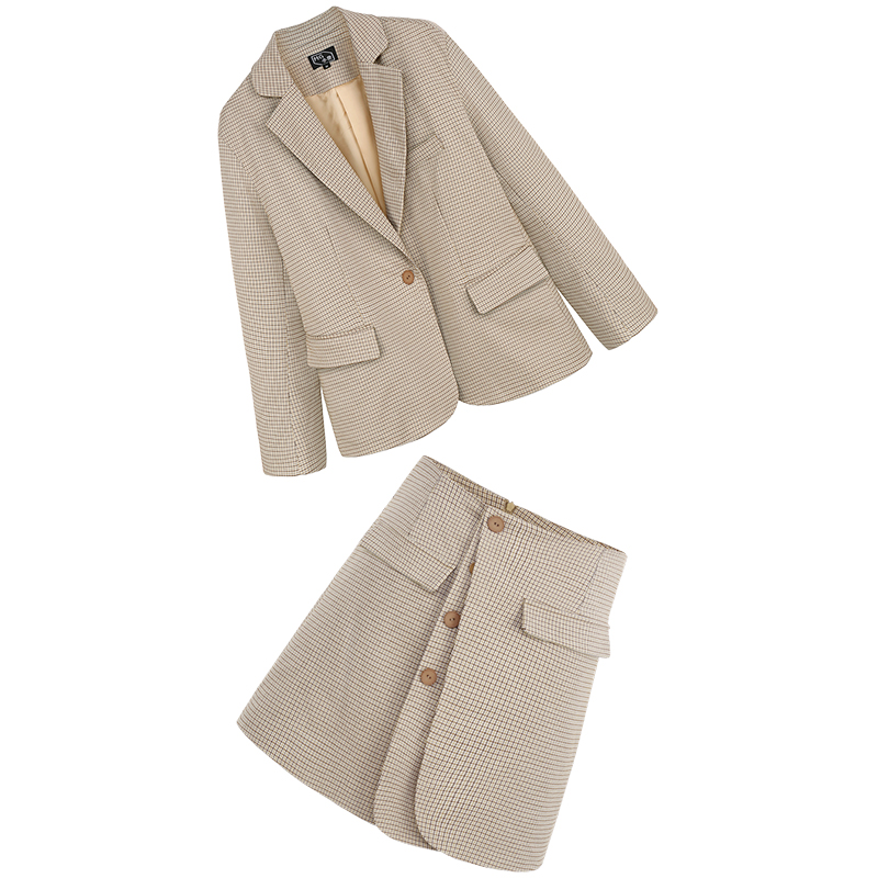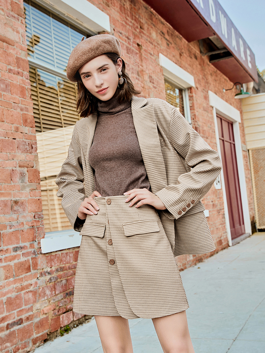 外套-格子|半裙-格子