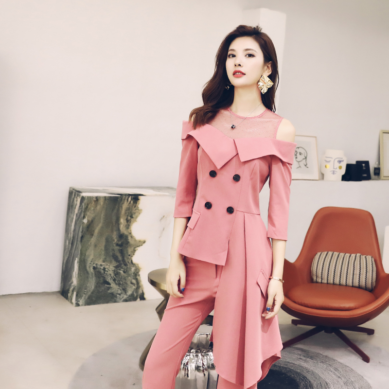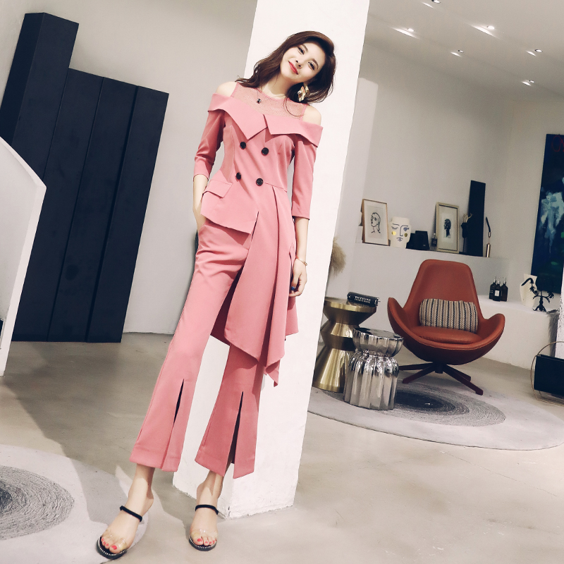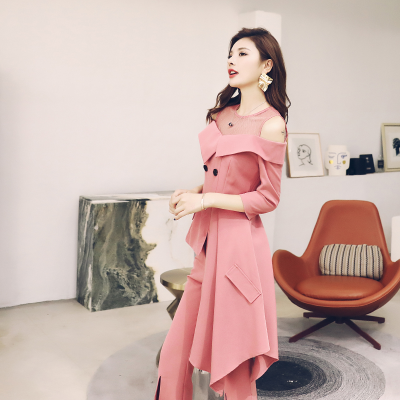 洋氣淑女套裝2018秋季新款女裝名媛露肩個性氣質上衣兩件套