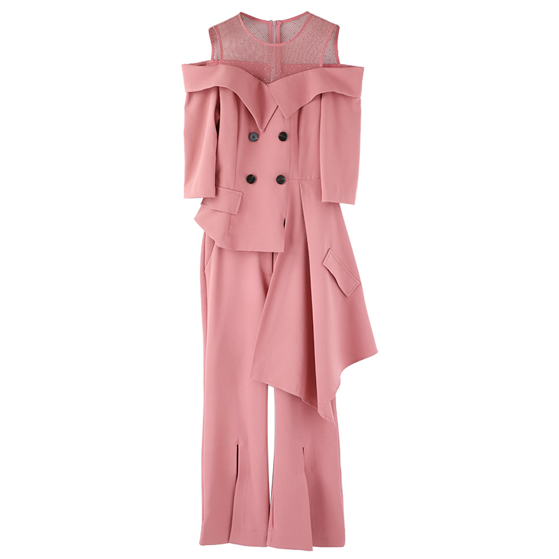 / 洋氣淑女套裝2018秋季新款女裝名媛露肩個性氣質上衣兩件套