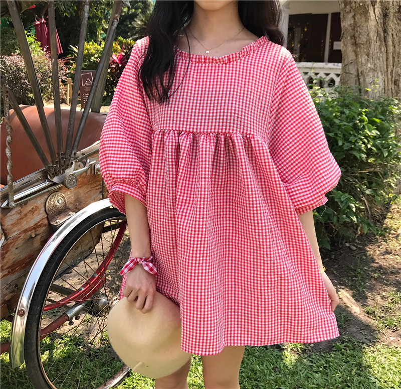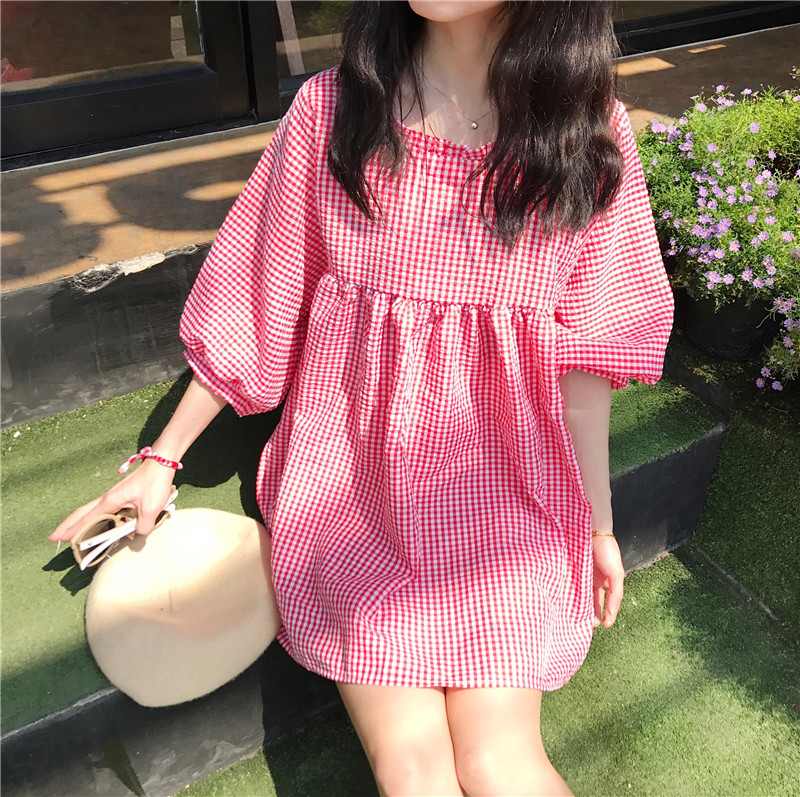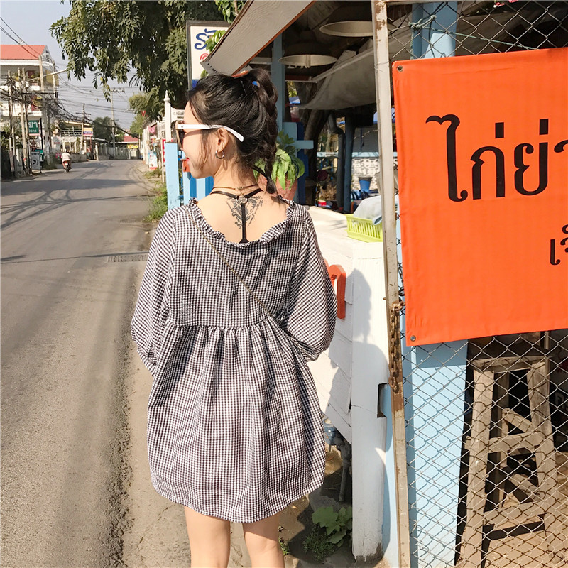 / 早春新款女裝復古學院風寬松顯瘦軟妹格子寬松顯瘦學生娃娃連衣裙