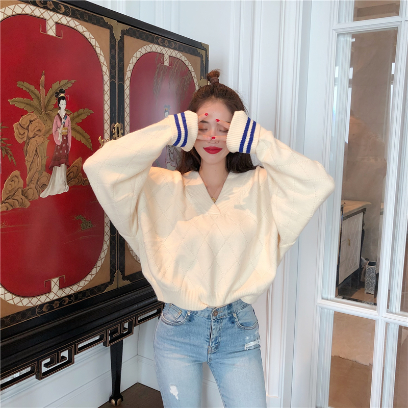 怕冷或是保守的MM可以把衣領翻上去就變成了基礎款V領毛衣